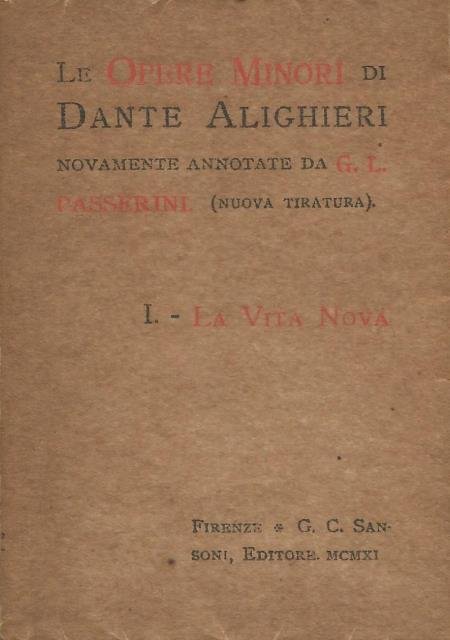 Le Opere minori di Dante Alighieri nuovamente annotate da G. L. Passerini. I - La vita Nova.