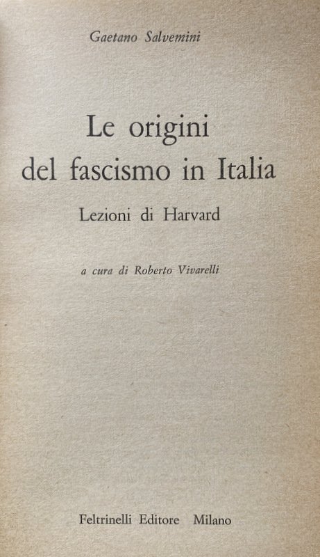 Titolo: Le Origini del Fascismo in Italia. Lezioni di Harvard.