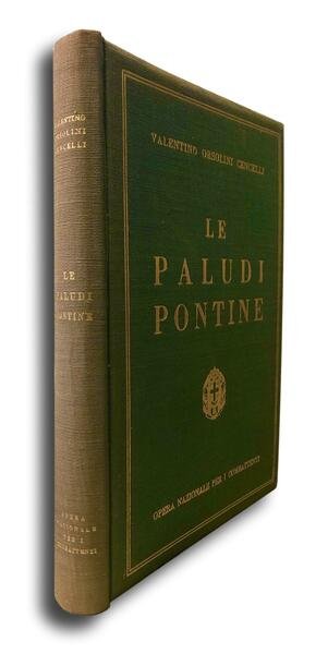 Opera Nazionale per i Combattenti, 1934. Tela editoriale rigida con titoli in oro al piatto e al dorso, pp 385 (cm 26x18), con 2 illustrazioni a colori applicate su cartoncino, con 132 illustrazioni in bianco e nero, con 1 planimetria delle bonifiche dell'Agro Pontino piu' volte ripiegata. Argomenti: Bonifiche Agro Pontino