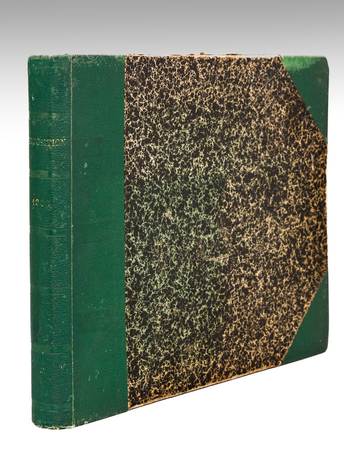 1 vol. grand in-4 format à l'italienne reliure demi-percaline à coin vert, s.l.n.d. [ L. Baschet, Paris, 1900], environ 234 ff. avec le plan en couleurs (72x55 cm) et le grand panorama dépliant Etat satisfaisant pour cet ensemble ne contenant pas les couvertures de livraison, et sans indication de numérotation ou de pagination (petites usures à la reliures, petits accrocs à la carte dépliante et au panorama). Prix en l'état pour cette promenade remarquable au milieu de l'Exposition Universelle de 1900