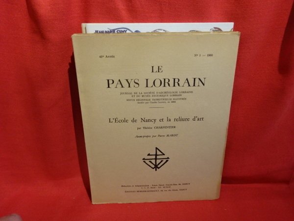 Nancy, Le Pays Lorrain, 1960; in-4, environ 40 pp., couverture beige et cahiers agrafés. Sommaire : Pierre MAROT : Avant-propos, p. 1./ Thérèse CHARPENTIER : L'école de Nancy et la reliure d'art, p. 3. Nombreuses illustrations en noir et blanc.