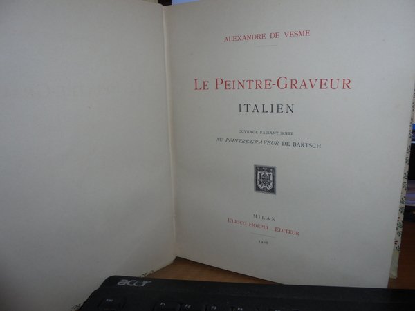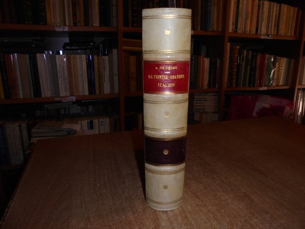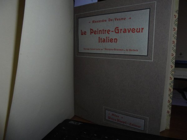 ALEXANDRE De VESME. Milan, Ulrico Hoepli Editeur, 1906. LE PEINTRE-GRAVEUR ITALIEN ouvrage faisant suite au Peintre-Graveur DE BARTSCH. In-8° grande, bella e pregiata legatura in m. pergamena con punte, dorso a nervi con fregi e titolo in oro, copertine originali conservate. 538, (3) pp. Bellissimo esemplare. Uff. E - V - 5 - 2