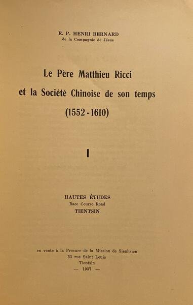 Le pèré Matthieu Ricci et la societe chinoise de son temp (1552-1610)