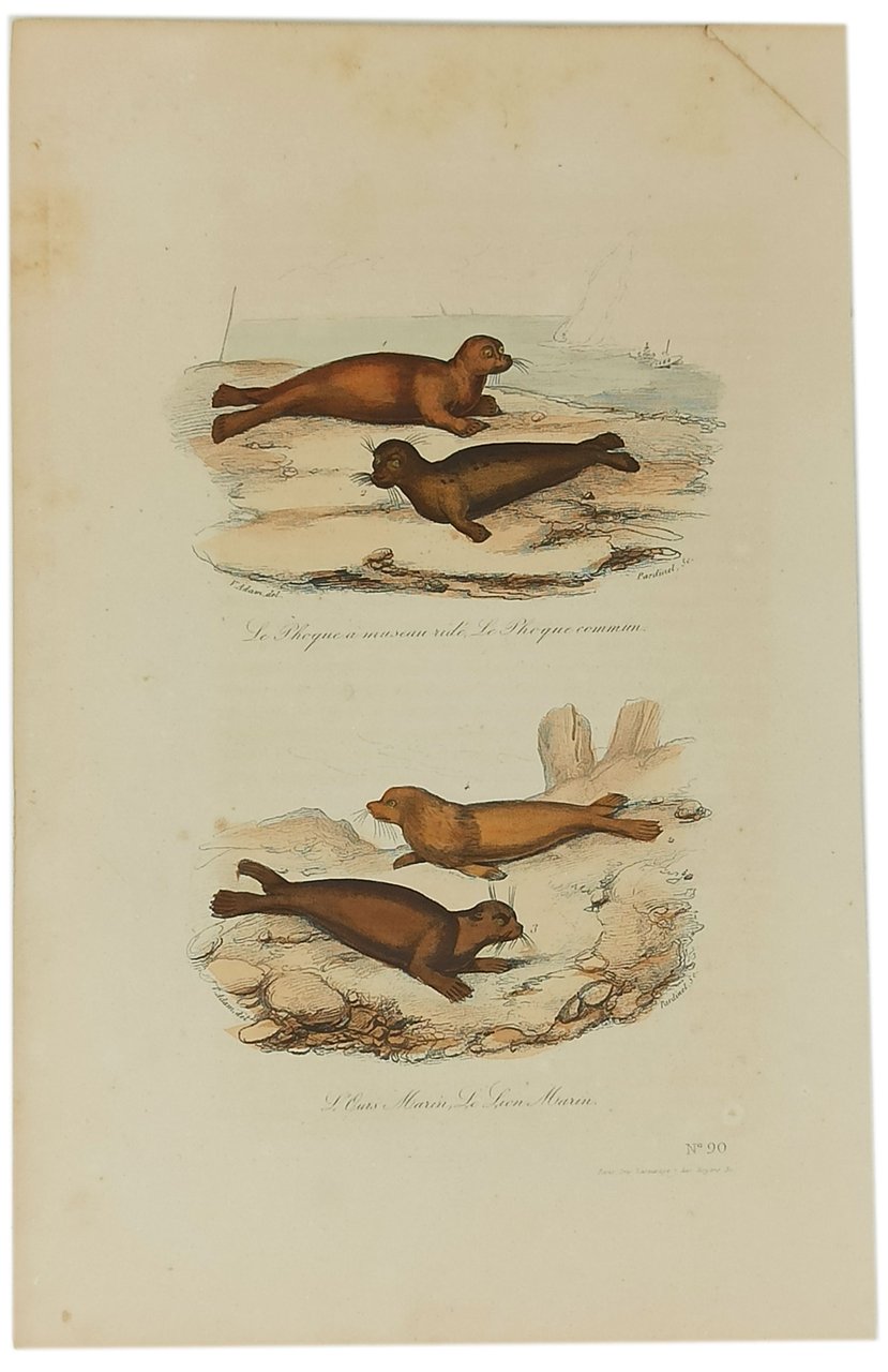 Le phoque à museau ridé, Le Phoque commun / L'ours Marin, Le Lion Marin (stampa antica)