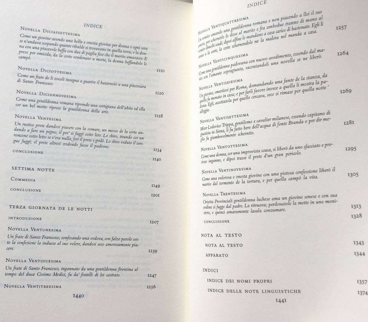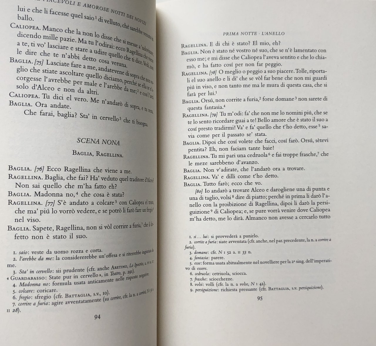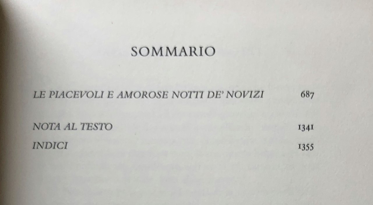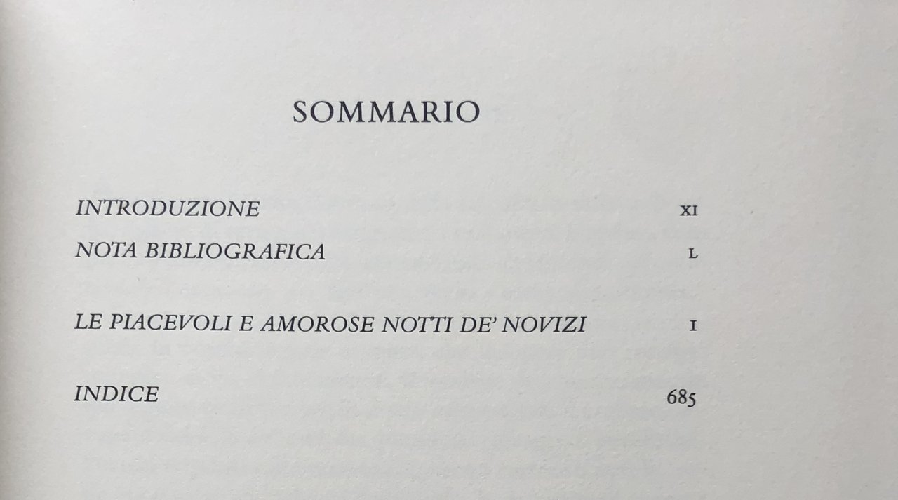 Soggetti: Letteratura italiana Dalle origini al Settecento Testi Classici italiani Novelle Narrativa italiana Romanzi Letterature Veglia senese Siena Scrittori italiani del XVI secolo Commedia dell'arte Libri vintage Emilia Fulgida Aurelia Adriana Corinzia Ippolito Costanzio Deca canonica Canti Danze Rappresentazioni teatrali Farse Dispute scherzose Giochi di società Descrizioni di luoghi ameni Banchetti Umorismo Erotismo Cinquecento Rinascimento Umanesimo Poesia Prosa Bibliografia Opere letterarie Cosimo de' Medici Giornate Notti Vita fiorentina Firenze Toscana Teatro Intrattenimento Schermaglie amorose Note Critica L'anello Lavinia L'anguilla Il Parasito Galatea Il pedante Erotisme et obscenité dans le nouvelles Au pays d'Eros litterature en Italie de la Renaissance l'age baroque The Pleasant Nights Italian literature Origins to Eighteenth century Texts Italian Classics Novels Italian Fiction Novels and Literatures Sienese Vigils 16th Century Italian Writers Vintage Books Songs Dances Theatrical performances Playful disputes Board games Descriptions of pleasant places Banquets Humor Eroticism Renaissance Humanism Poetry Prose Bibliography Literary works Days Florentine life Theater Entertainment Skirmishes love Notes Criticism Veglie Vegghie Novellieri italiani Novelle Burlesque Burle Scherzi Collezionismo Edizioni pregiare Critica letteraria Opere complete da collezione Satira Novellistica Racconti Alfonzo Amanti Amore Antioco Asdruballe Bargagli Barozo Battaglia Beffa Bella Bennardo Brigata Cortigiana Decameron Deifebo Dolce donna Fanciulla Fante Flavonio Flonia Francescotto Gentiluomo Giovine Godensio Grosseto Marito Mosca Oresto Piacere Piacevole Pirra prete racconto Santi scudi signore spagnuolo Tindaro Tommaseo-Bellini ucellovechia Vedova Zeus Alceo Ariconte Baglia Gerhard Rohlfs Calfurnia Caliopea Cechino Cirro Comenico Commedie Corsetto Dedalo Dialetto senese Donne Dorico Druppio Erminio Ginfranco Fortini Accademia Frusta Gegonio Gilena Intronati Leurnia Lisandro Livia Madonna Massimenio Metafora Messere Nesifile Novelliere Orsù Panfilo Persia Ragellina Sandrina SCENA Solico Soringo Strambo Tacito Tibullo Tulia