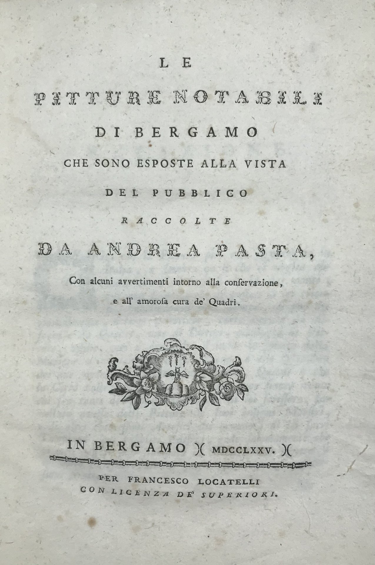 Le pitture notabili di Bergamo che sono esposte alla vista del pubblico […], con alcuni avvertimenti intorno alla conservazione, e all’amorosa cura de’ quadri.