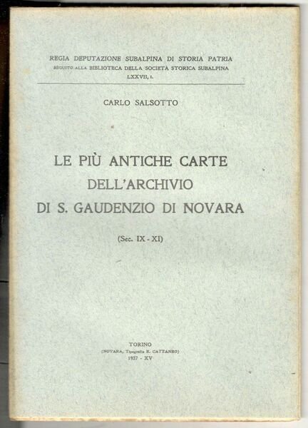 Le più antiche carte dell'archivio di S. Gaudenzio di Novara (Sec. IX - XI)