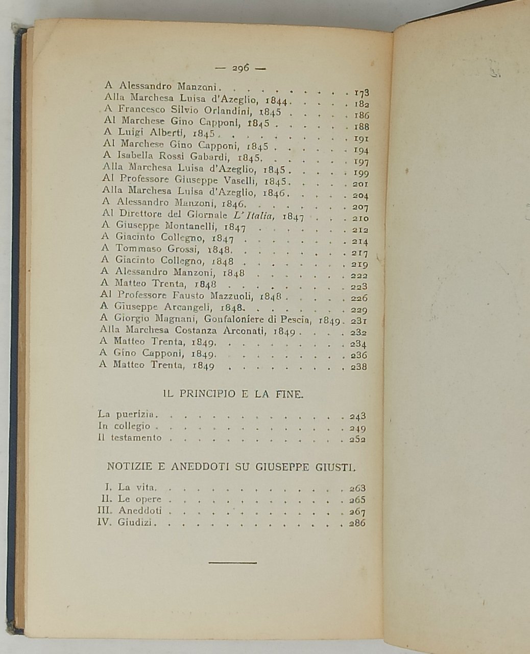 Dimensioni: 14,5 x 21 cm circa. Stato di conservazione: Una firma d'appartenenza a penna sulla pagina riportante la serie, lievi piccole (e appena accennate) stropicciature sul margine superiore delle pagine, un'orecchia sull'angolo superiore del foglio che contiene le pagine 101-102 e degli ultimi due fogli ma, nel complesso, un buon esemplare. In anteporta è presente un ritratto di Giuseppe Giusti (tratto da un disegno di E. Rossi) applicato sulla pagina. Al fondo del volume, un'ultima sezione è dedicata alle 'notizie e aneddoti su Giuseppe Giusti'.