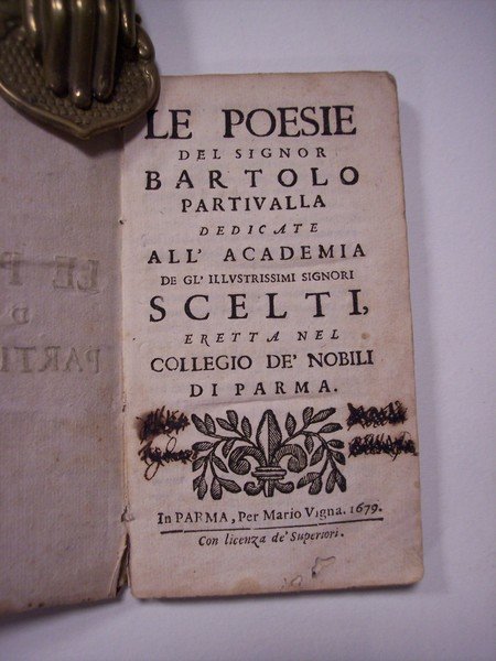 Le poesie del signor Bartolo Partivalla dedicate all'Academia de gl'Illustrissimi Signori Scelti, eretta nel Collegio de'Nobili di Parma.