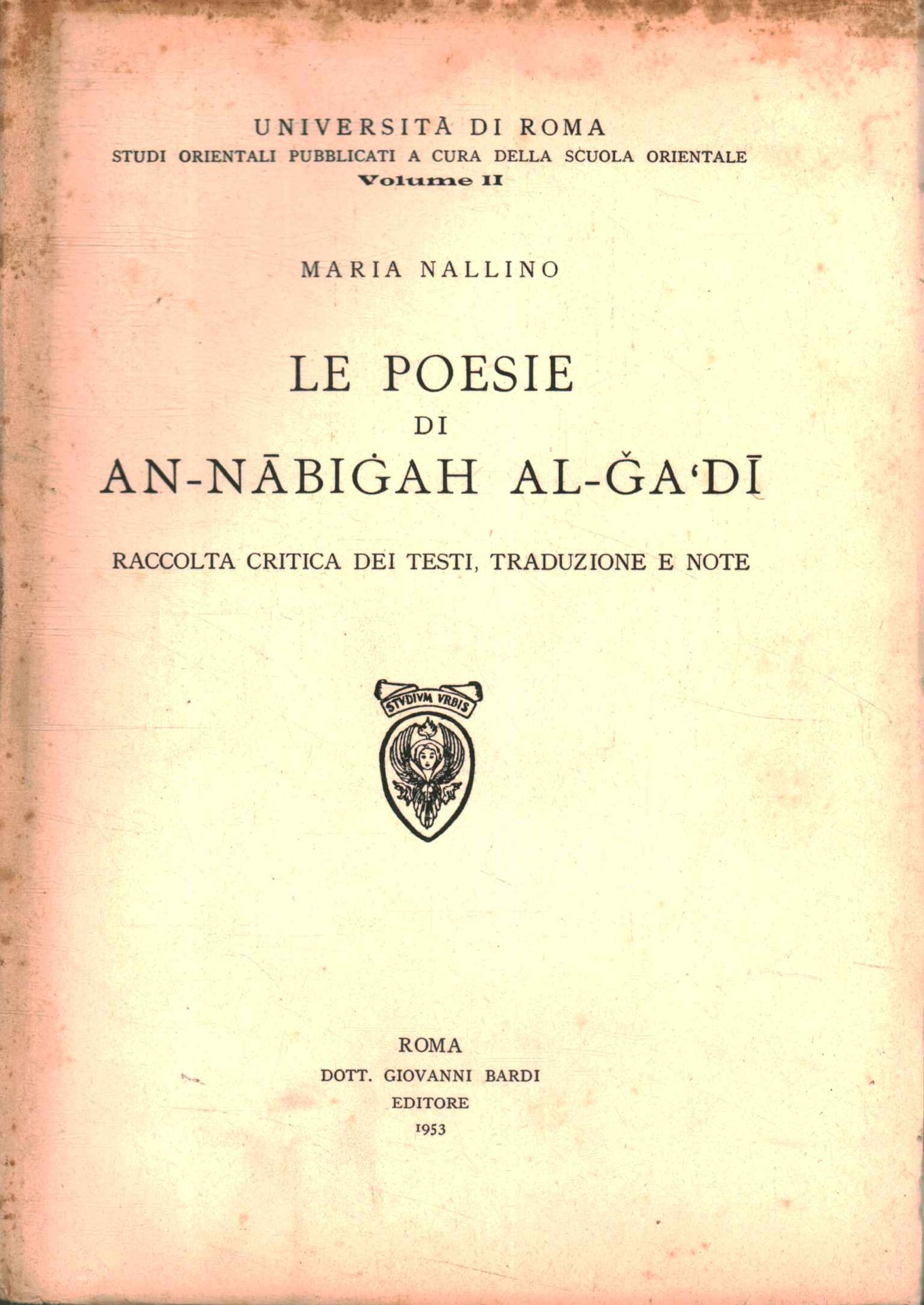 Esemplare in buone condizioni.Copertina con tracce di polvere, fioriture e gore d'umidità; prezzo modificato a penna alla quarta di copertina; gora di umidità alla seconda di copertina.Fioriture e strappo alla porzione inferiore del dorso.Tagli ingrossati. Pagine brunite ai bordi.Testo in italiano/arabo.