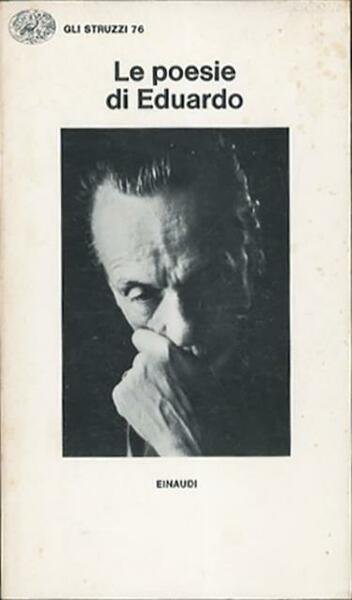 5. ed. 230 p. ; 20 x 12 cm. Gli struzzi, 76. «Dopo aver scritto poesie giovanili, come fanno piú o meno tutti i ragazzi, questa attività divenne per me un aiuto durante la stesura delle mie opere teatrali. Mi succedeva, a volte, riscrivendo una commedia, d’impuntarmi su una situazione da sviluppare, in modo da poterla agganciare piú avanti a un’altra, e allora, messo da parte il copione, per non alzarmi dal tavolino con un problema irrisolto, il che avrebbe significato non aver piú voglia di riprendere il lavoro per chissà quanto tempo, mi mettevo davanti un foglio bianco e buttavo giú versi che avessero attinenza con l’argomento e i personaggi del lavoro interrotto. Questo mi portava sempre piú vicino all’essenza del mio pensiero e mi permetteva di superare gli ostacoli. Per esempio, ‘A gatta d’ ‘o palazzo e Tre ppiccerille mi aiutarono ad andare avanti con Filumena Marturano. Come la gatta lascia il biglietto da mille lire e mangia il cibo, cosí Filumena non mira al danaro di Domenico Soriano ma alla pace e alla serenità dei suoi figli. I quali figli sono poi i tre bambini sotto un ombrello che vidi davvero una mattina in un vicolo di Napoli, uniti nella poesia, separati nella vicenda teatrale fino al momento della rivelazione di Filumena… A poco a poco ci ho preso gusto e ora scrivo poesie anche indipendentemente dalle commedie» (E. De Filippo). Brossura editoriale, coperta illustrata (b/n) con ritratto fotografico dell'autore in cartoncino flessibile plastificato opaco, titolo impresso al piatto e al dorso. Qualche leggero segno del tempo alla coperta per il resto esemplare integro. Codice libreria 7460.
