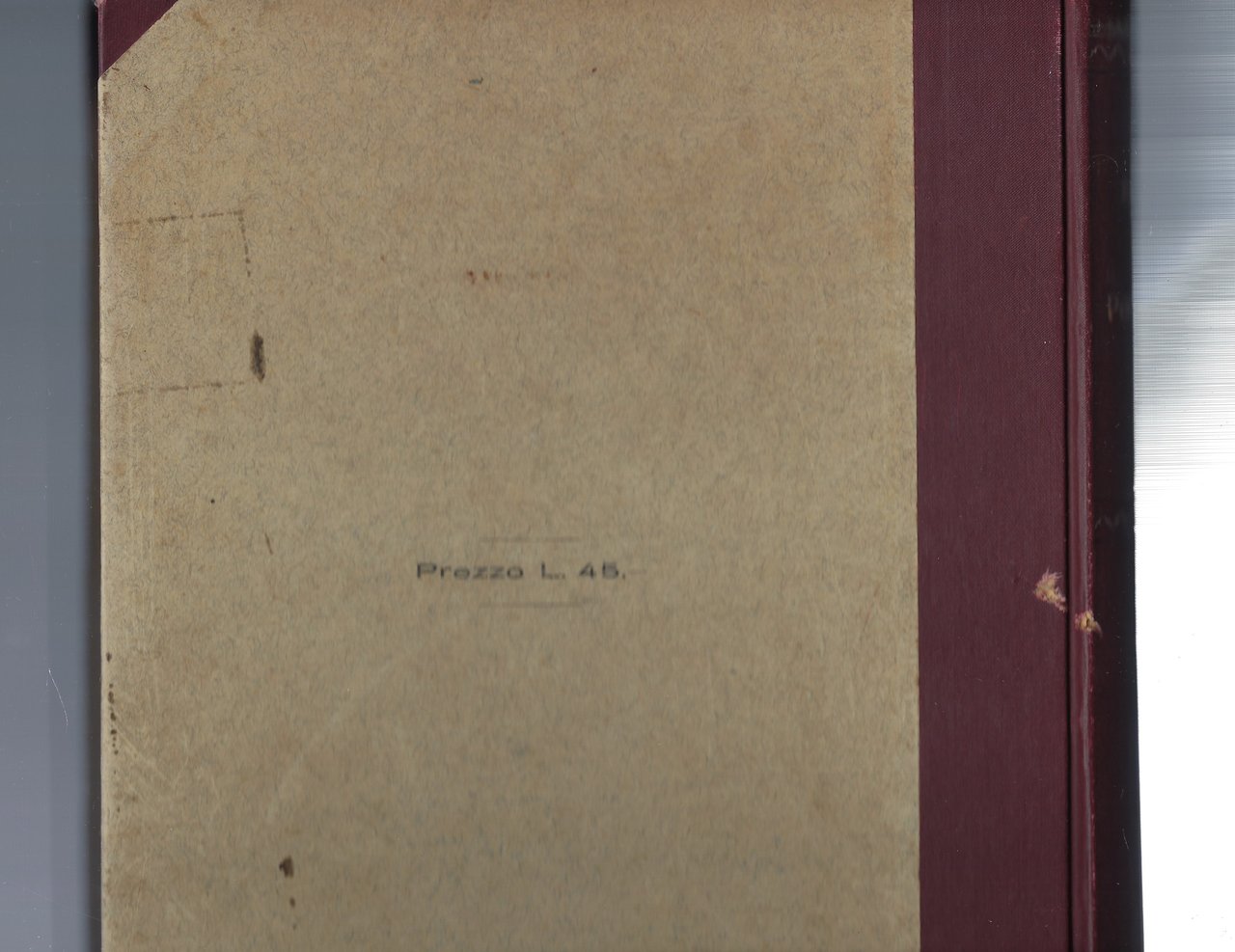 Presenta alcune tracce d'usura e di tempo e segni vari, con alcune abrasioni agli angoli ed una in particolare al piatto posteriore vicino al dorso.
