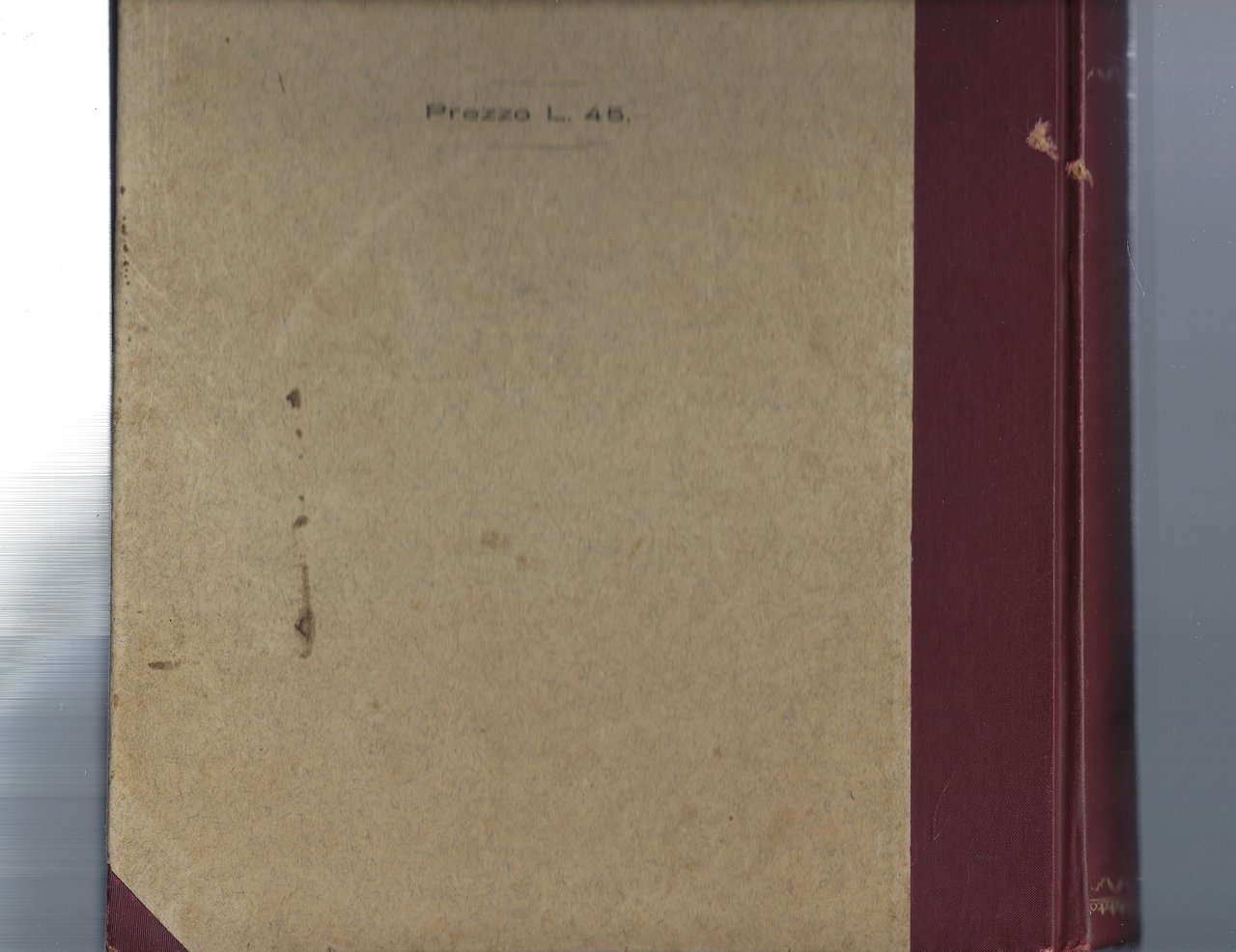 Interessante volume in cartonato rigido rinforzato al bordo ed agli angoli, con titoli rossi e neri al piatto anteriore e dorati.