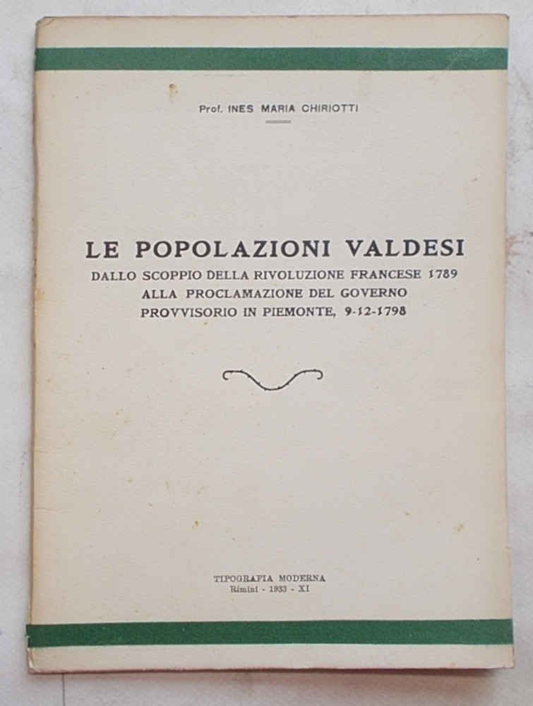 Le popolazioni valdesi dallo scoppio della Rivoluzione Francese 1789 alla proclamazione del Governo Provvisorio in Piemonte, 9-12-1798.