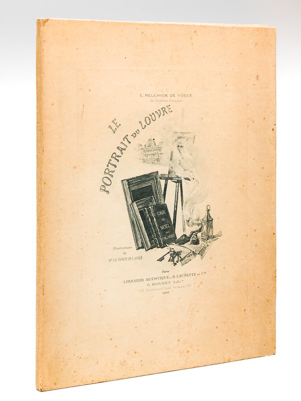 Un des 525 exemplaires numérotés, un des 500 exemplaires sur papier vélin (n°56), 1 vol. in-folio en feuillets sous chemise cartonné à lacets en angles, Librairie Artistique - H. Launette et Cie - G. Boudet Succr, 1889, 2 ff., 29 ff. paginés (imprimés au recto), et 1 f. Conte de Noël. Un récit fantastique dans les couloirs du Louvre, par le célèbre traducteur de la littérature russe, l'écrivain et diplomate Eugène Melchior de Vogüé. Bon état (chemise lég. frottée, qq. rouss.)