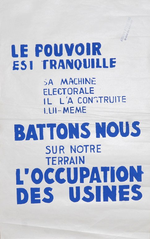 MANIFESTOManifesto originale.Qualche leggera piegatura.Serigrafia a inchiostro blu. Timbro dell’Atelier Populaire.