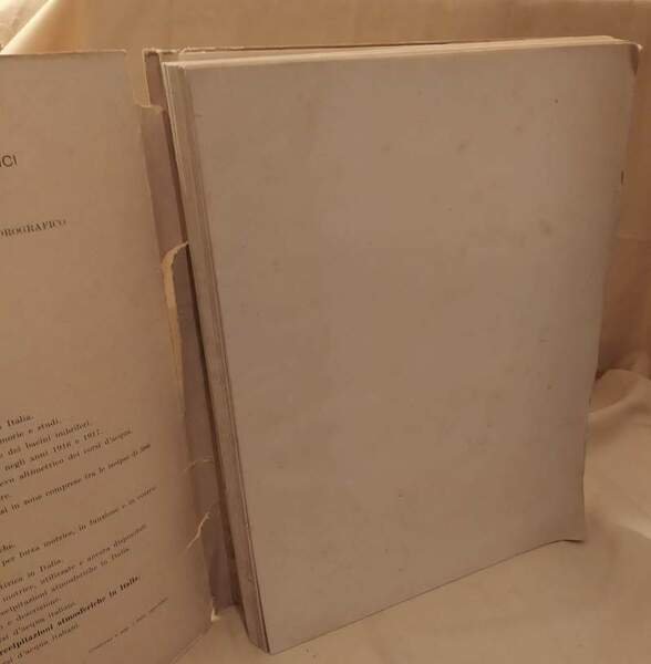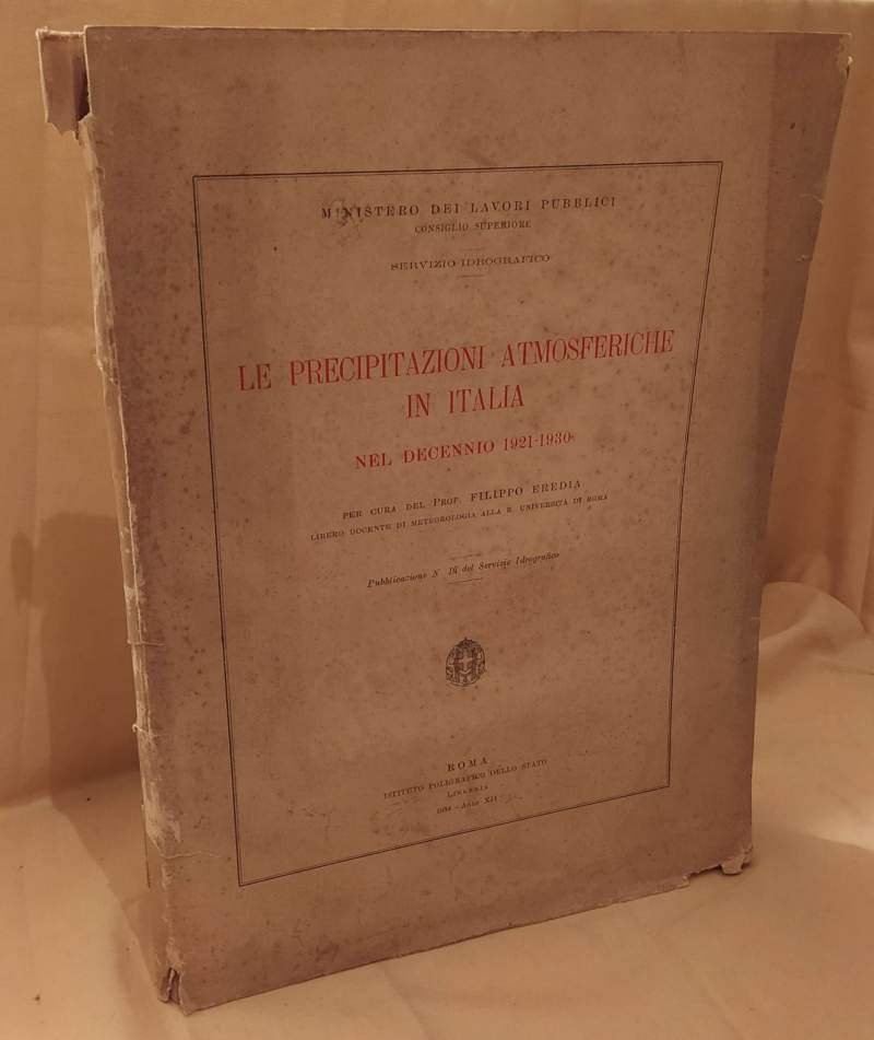 In 4^, bross., pp. 320, circa una trentina di tavv. a col. in fine con la distribuzione stagionale delle precipitazioni acquee nelle varie regioni. Dorso e piatto ant., con strappi e mancanze, scollati ma ancora uniti al corpo, leg. molto lenta. Discrete condizioni. ***Due to bureaucratic reasons, books dated over 70 years old cannot be immediately exported, please contact us before placing the order.***