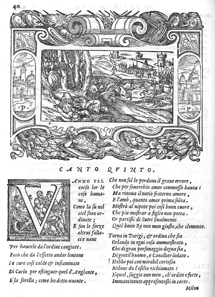 Le Prime Imprese del conte Orlando, di M. Lod. Dolce. Da lui composte in ottava rima et nuovamente stampate. Con gli Argomenti e Allegorie per ogni canto.