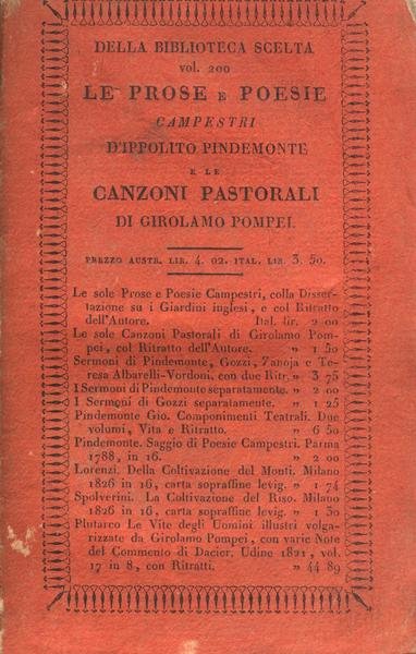 LE PROSE E LE POESIE CAMPESTRI D'IPPOLITO PINDEMONTE e LE CANZONI PASTORALI DI G. POMPEI