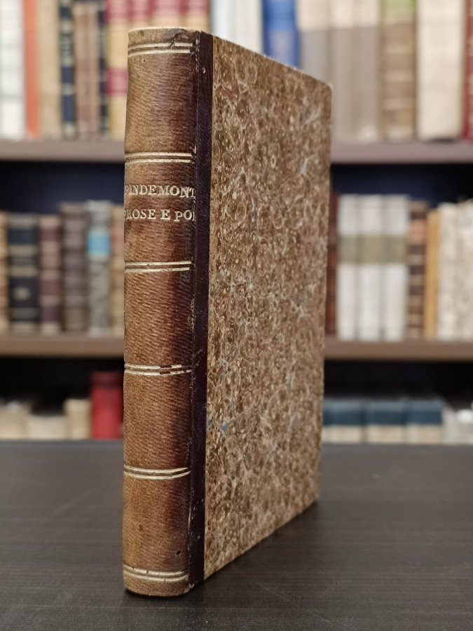 In-8° piccolo (cm. 14,4), legatura coeva in mezza pelle nocciola con titolo e filetti in oro al dorso (piccolissimi fori di tarlo), tagli spruzzati in blu; pp. [4] 232 in ottimo stato (lievissime e sporadiche fioriture); all'antiporta 1 ritratto dell'autore in tondo inciso in rame da C. Cattaneo su disegno di C. Silvestri. «Edizione accresciuta del giardino inglese descritto dall'autore ne' sepolcri e di due appendici». Esemplare molto buono. (NQ6)