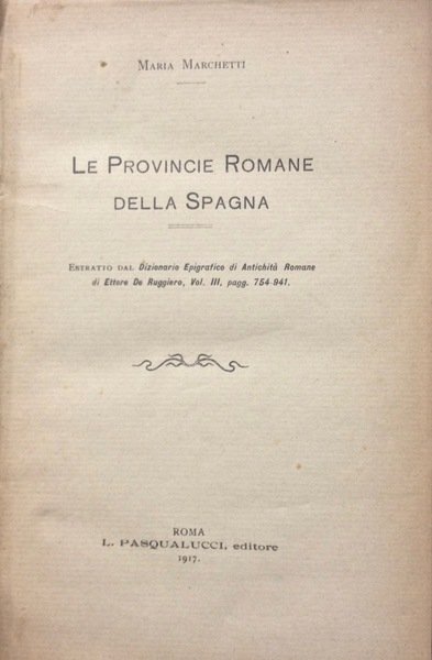Estratto dal Dizionario Epigrafico di Antichitˆ Romane, di Ettore De Ruggiero, Vol.III, pagg. 754-941. Volume in mezza tela con tassello al dorso, piatti cartonati, pp 508