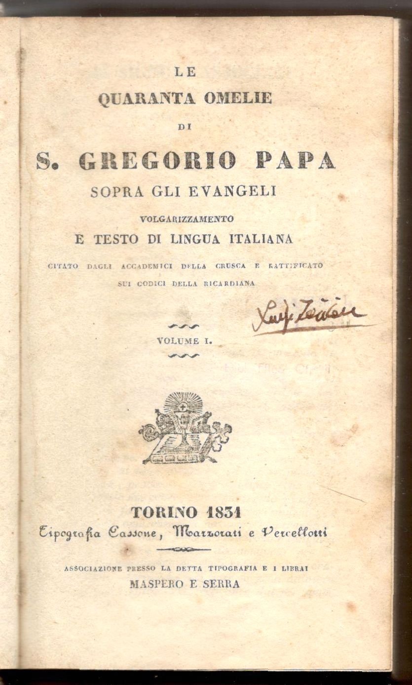 Le quaranta omelie di S. Gregorio Papa sopra gli Evangeli. Volgarizzamento e testo di lingua italiana : citato dagli Accademici della Crusca e rattificato sui codici della Ricardiana