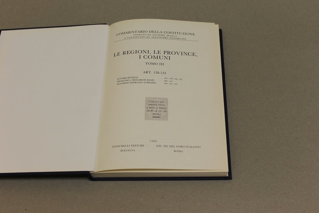 AA. VV. Le Regioni, le Province, i Comuni. Bologna, Zanichelli 1990 italiano, 24,5 17,5 pp.220 Commentario della Costituzione. Tomo III, ART. 128-133