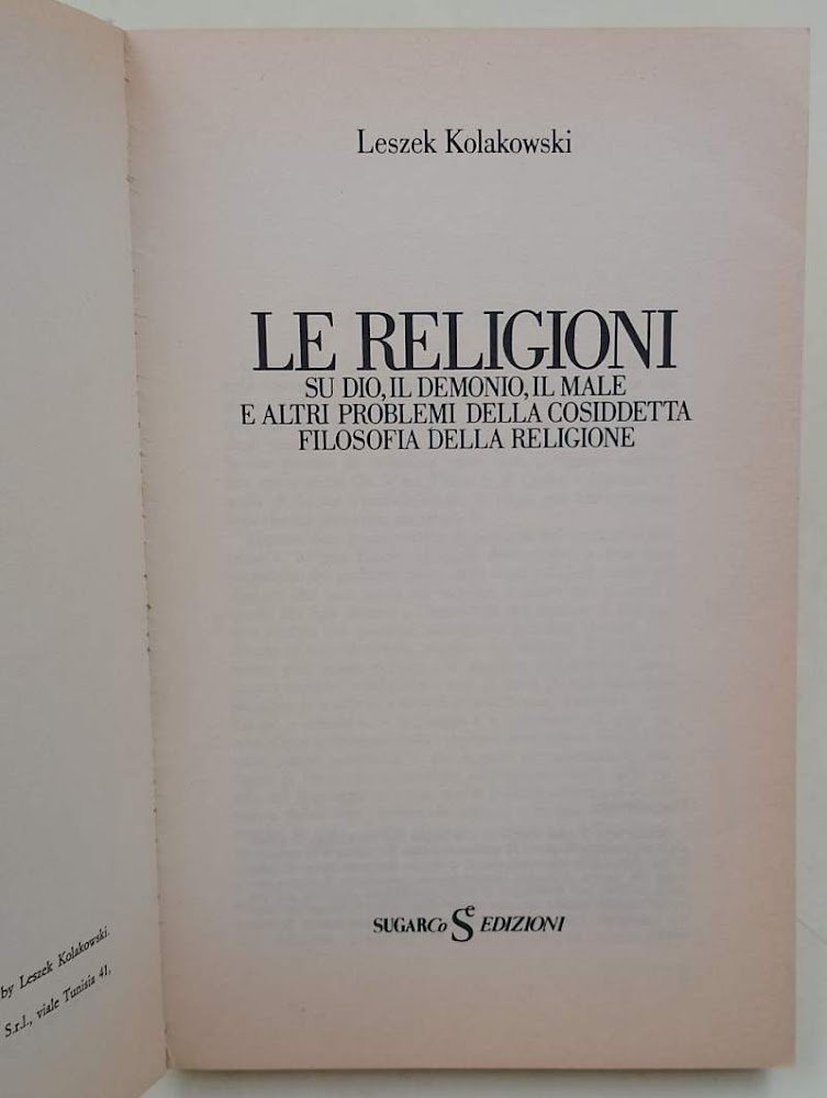 LE RELIGIONI SU DIO, IL DEMONIO, IL MALE E ALTRI PROBLEMI DELLA COSIDETTA FILOSOFIA DELLA RELIGIONE(1983)