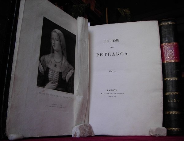 Due volumi in folio (cm. 34,5 x 25), legati in pelle, titoli al tassello al dorso, sguardie decorate, tavola d'antiporta, frontespizi, prefazione, biografia del Petrarca, LIX (1) 357 (3) pp.; (6) 444 (6) pp., 9 splendide tavole f.t. incise in acciaio ed all'acquaforte da Morghen, Gandolfi, Lose ed altri mastri incisori. L'opera che si presenta un fiore all'occhiello per i bibliofili, si tratta della splendida e correttissima edizione delle Rime del Petrarca, frutto dello studio e delle attentissime cure del celebre professore Antonio Marsand, la stesura della quale cominci il 27 di ottobre del 1818 e termin il 22 febbraio 1820 ed il mese di aprile dello stesso anno f pubblicata (come citato al colophon). Marsand, appassionato cultore del Petrarca, realizz unedizione filologica superiore alle precedenti, in unepoca in cui il codice autografo contenente la redazione definitiva delle Rime non era ancora stato ritrovato. Dopo una rigorosa collazione di tutte le versioni esistenti, Marsand sottopose le lezioni di alcuni passi al giudizio dellAccademia della Crusca e scelse un testo basato sulle edizioni pi accreditate al suo tempo, avvalendosi di quelle condotte sugli autografi per eliminare le varianti (soprattutto, in particolare, l'edizione di Martino de Septem Arboribus stampata in Padova nel 1472 a cura di Valdizocco, la celebre di Aldo in Venezia 1501 colla soprintendenza di Pietro Bembo e quella di Stagnino in Venezia 1513 per studio di Marsiglio Umbro Forsempronese). Dato il carattere filologico del lavoro svolto, Marsand non aggiunse notazioni critiche ai componimenti, limitandosi ad apporre a ognuno di essi un breve cenno al contenuto e preferendo piuttosto corredare lopera di appendici storico-bibliografiche molto precise, nonch di pregiate incisioni quali i ritratti di Laura e Petrarca, rispettivamente a opera di R. Morghen e P.M. Gandolfi (di tutte le incisioni presenti nell'opera viene spiegato il motivo della scelta e la collocazione). Fino al riconoscimento della redazione definitiva delle Rime nel codice della Biblioteca apostolica Vaticana (1886), questopera costitu un riferimento per le successive edizioni italiane di Petrarca, non ultime quelle di G. Leopardi (Le Rime di F. Petrarca, Milano 1826), personalmente conosciuto dal Marsand, e di G. Carducci (Rime di F. Petrarca sopra argomenti storici, morali e diversi., Livorno 1876). Fra i giudizi favorevoli suscitati dallopera, figurano quello dellamico Vincenzo Monti, (in Giorn. arcadico, febbraio 1821, pp. 206-219), nonch la recensione apparsa nella Biblioteca italiana (giugno 1820, pp. 287-295) ed anche un interessante saggio intitolato 'DELLA EDIZIONE LE RIME DEL PETRARCA PUBBLICATE PER OPERA E STUDIO DEL PROFESSORE MARSAND. RELAZIONE DEL PROFESSORE MENEGHELLI' dalla Tipografia della Minerva, Padova 1820 (opuscolo in 4 di 18 pp. nn.) che, data l'attinenza e l'interessante contenuto, ci pregiamo unire in omaggio. L'opera eccezionale per completezza ed accuratezza, bel carattere tipografico, amplissimi margini, carta forte e chiara, incisioni di splendida fattura e nitidezza. Di assoluto prestigio internazionale e di notevole rarit. La si presenta perfetta, in barbe, fior di stampa.