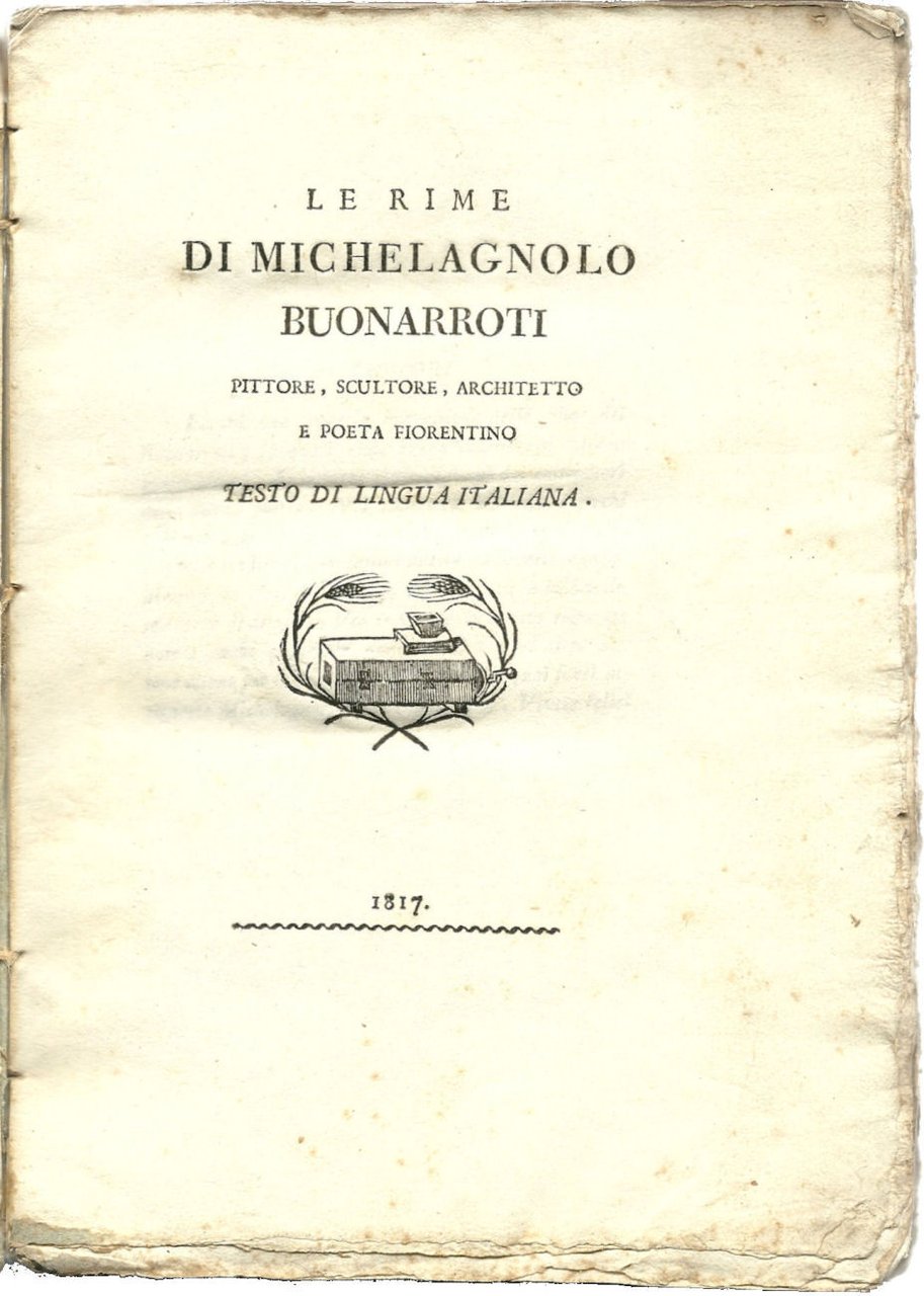 Le rime di Michelagnolo Buonarroti pittore, scultore, architetto e poeta fiorentino.