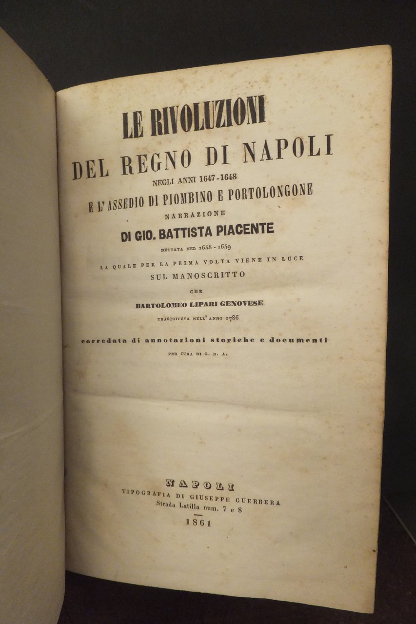 NAPOLI TIPOGRAFIA DI GIUSEPPE GUERRERA 1861 - RILEGATO 23 X 15 PP. 464 CONDIZIONI ACCETTABILI, CLASSICI SEGNI DEL TEMPO, PRESENZA MACCHIE, INTERNO VOLUME.