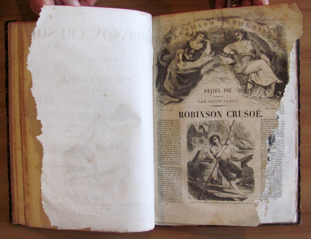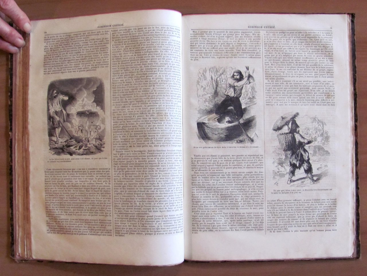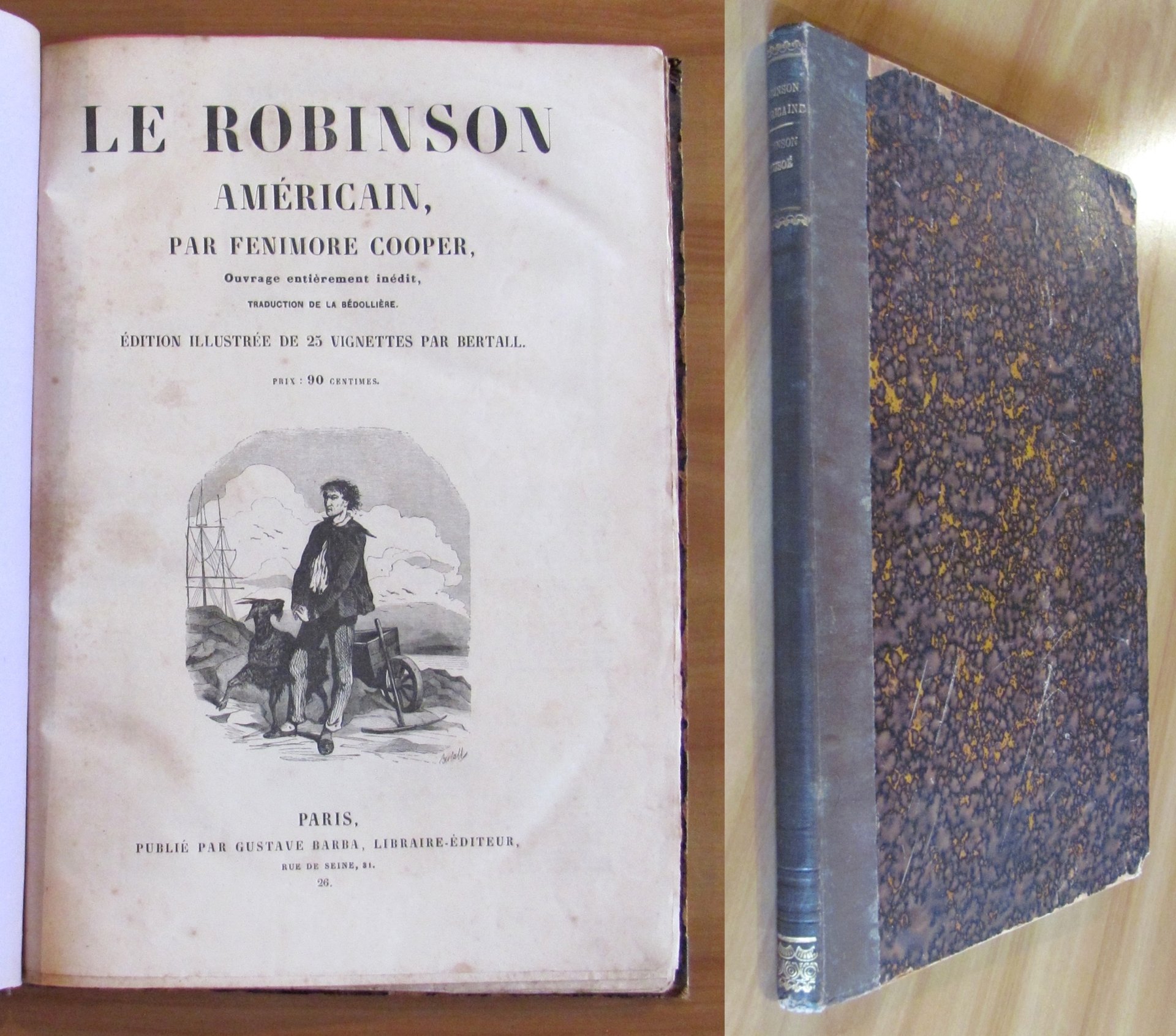 25 illustrazioni in b/n di Bertall. Ed. Gustave Barba - Paris, s.d. fine '800. Rilegatura cartonata coeva con dorso in tela con titoli in oro. Margini delle copertine leggermente logori. Lievi fioriture del tempo in qualche pagina. 23x32; pp.64. Il racconto è seguito da: L'Homme des Bois, La Chasse aux Insectes di 7 pagine totali e da Robinson Crusoe, illustrato da Janet Lange, le cui prime 16 pagine sono mancanti di una porzione esterna con perdita di testo (non valutato nell'offerta). Raro e in Buono stato. , Molto buono (Very Good)