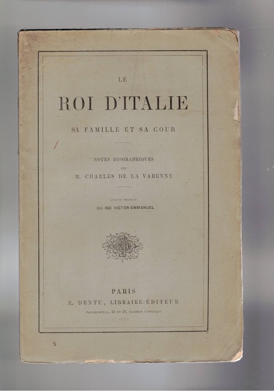 In-8° gr. pp. 47 con un ritratto del re f.t. Bross. edit. intonso.