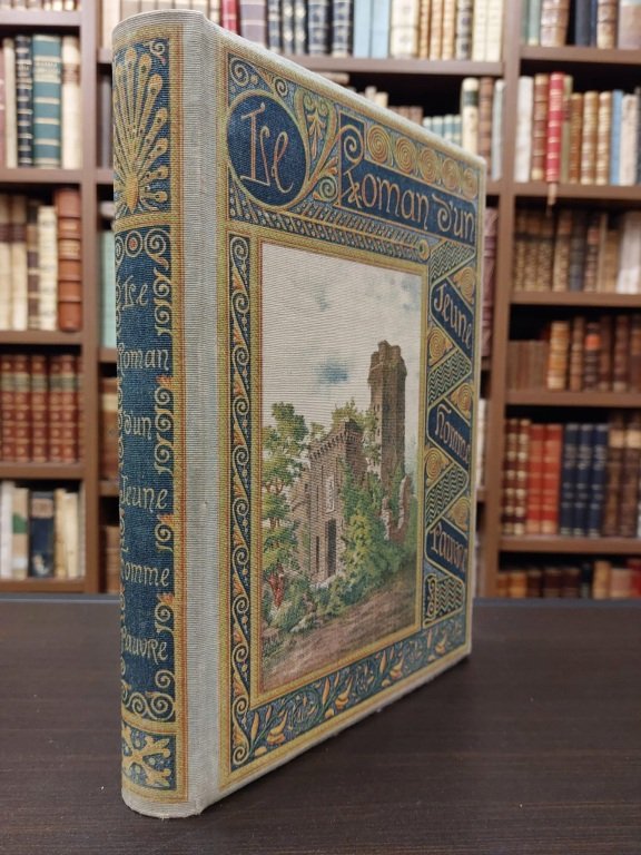 In-8° (cm. 28), legatura editoriale in tutta tela figurata a colori, con titolo tra cornici e motivi decorativi al dorso e al piatto anteriore, tagli dorati, risguardi in carta colorata azzurrina, custodia marmorizzata con interno felpato e titolo in oro su tassello nero al dorso; pp. [8] 227 [5] in ottimo stato (lievi bruniture). Frontespizio con titoli in rosso e nero e vignetta tipografica, stemma editoriale al colophon. Tavola con ritratto dell'autore inciso in nero all'antiporta fuori testo, protetta da velina. Ricco di illustrazioni in nero n.t. disegnate da Mouchot e incise da Méaulle. Ottimo esemplare. (NX)