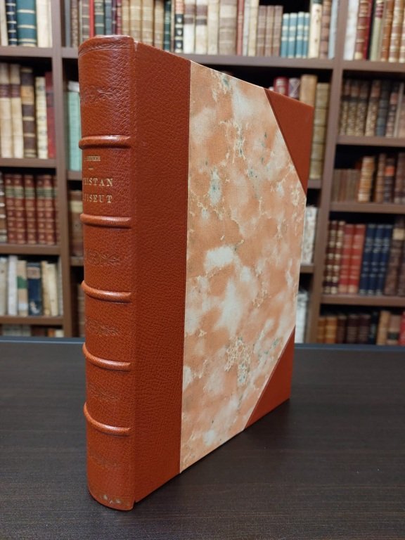 In-8° (cm. 23,8), legatura coeva in mezza pelle nocciola e angoli, dorso a nervi con titolo e fregi in oro, taglio superiore dorato; pp. 199 [5] in barbe, in ottimo stato. Testo inquadrato da eleganti cornici xilografiche, numerosissime illustrazioni xilografiche a colori intercalate n.t. Conservata la brossura originale a stampa. Esemplare non numerato. In ottimo stato, conservato in custodia. (NX)