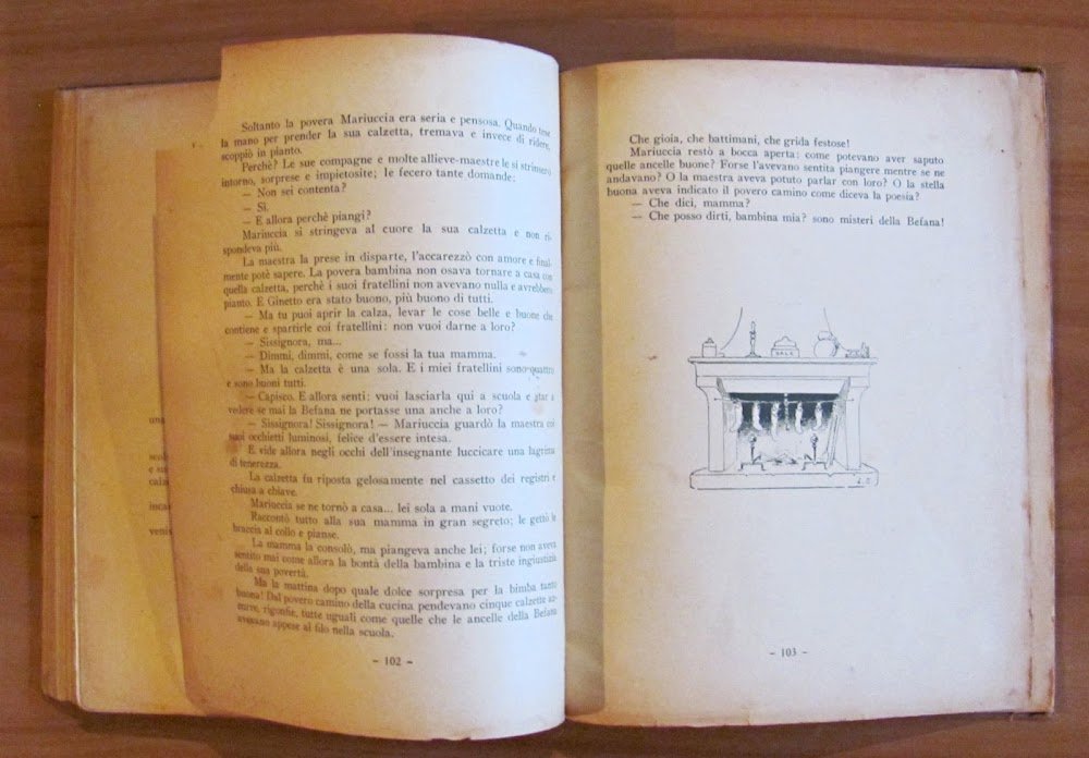 Molte illustrazioni in tinta n.t. e 4 tavole a colori f.t. Società Editrice Internazionale - Torino, s.d. anni '20. Cartonato editoriale con imperfezioni del tempo al dorso e alle copertine. Sporadiche fioriture in qualche pagina. Pag. 69-70 restaurata con scotch; pag. 83-84 con minime barbe restaurate ai bordi esterni e la tavola alla pagina accanto con mancanza in alto a sinistra. Frontespizio mancante. 22x28; pp.112. RARO e PIU'CHE ACCETTABILE , Mediocre (Poor)