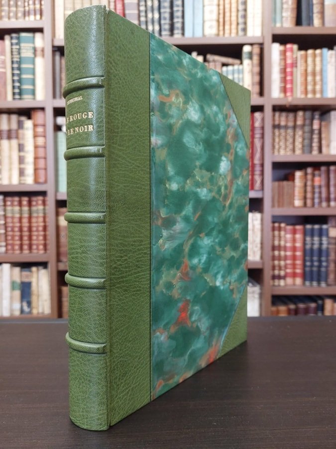 <span style="font-style: normal;">In-8° (cm. 27), legatura d'amatore in mezza pelle verde ad angoli, dorso a nervi con titolo in oro, piatti marmorizzati, taglio superiore dorato, conservata la brossura originale illustrata; pp. 578 [4] in barbe, in ottimo stato. Vignetta al frontespizio. Opera riccamente illustrata da vignette incise in nero intercalate nel testo. Tiratura limitata di 380 esemplari </span><i>sur Vélin a la forme</i>. In ottimo stato, conservato in custodia marmorizzata con interno felpato. (SP4)