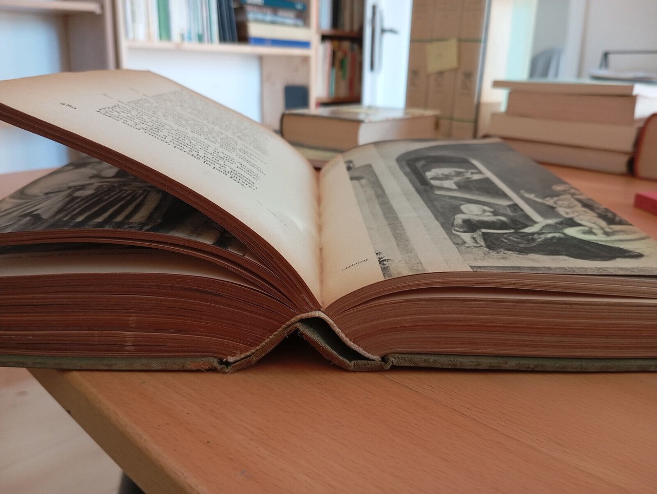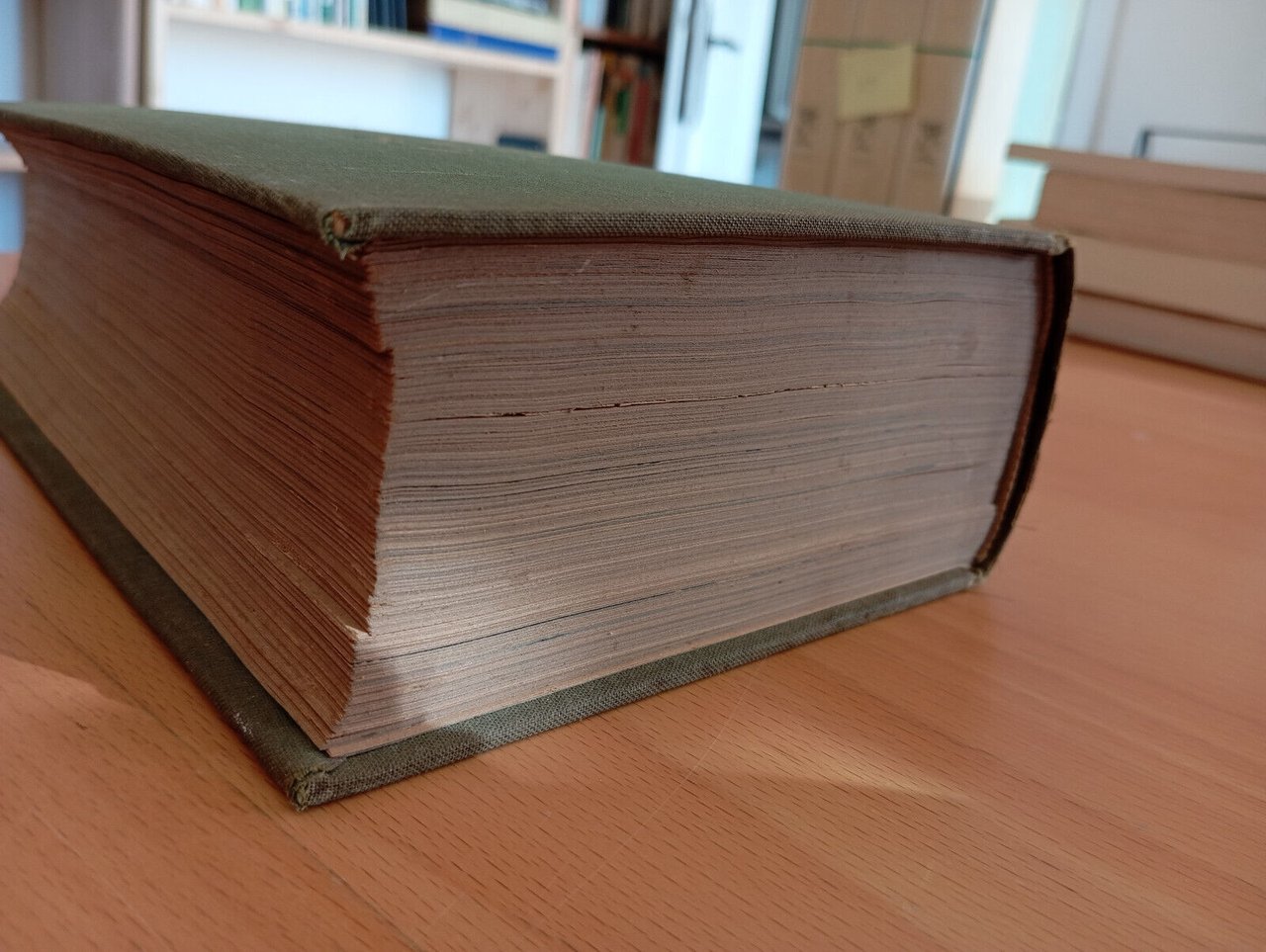 Copertina rigida con segni di usura del tempo e sbiadimento delle scritte sul dorso, come da foto. Cedimenti nella legatura anteriore e posteriore dei piatti della copertina rispetto al corpo, per il resto non compromessa, Pagine ingiallite, come da foto