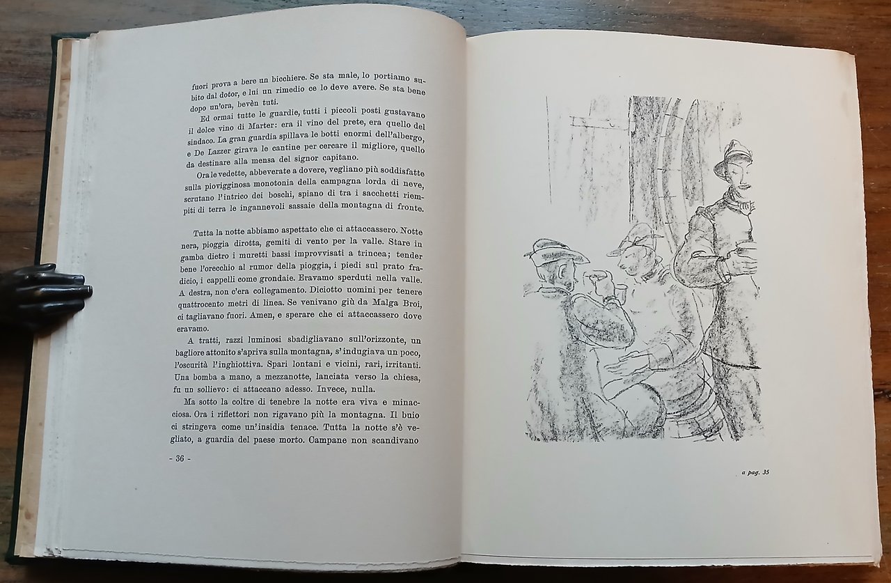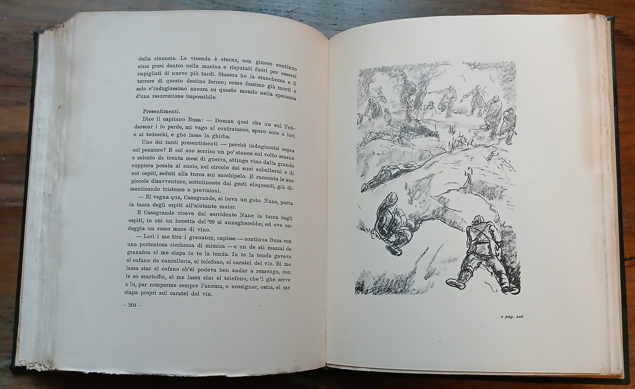 In 8°, legatura in mezza pelle verde con punte, dorso a 4 nervi con spranghe, titolo e filetti impressi in oro, ai piatti carta uso serpente a fondo verde scuro, guardie in carta marmorizzata ocra, cerniere interne in tela verde, segnalibro in seta, conservata la brossura editoriale con bandelle e disegno in sanguigna sul piatto anteriore, pp. XII,249,(1), con 24 litografie di Mario Vellani-Marchi su tavole fuori testo. Edizione di lusso di 2000 copie numerate da I a C e da 101 a 2000 in carta speciale filogranata (copia n. 1365). Alcune macchie interessano il piatto posteriore della brossura originale, per altro volume in ottimo stato di conservazione.