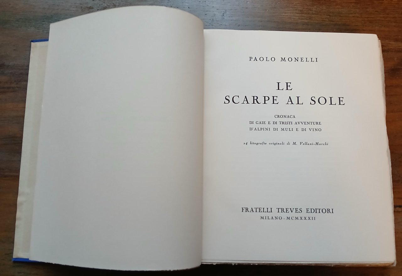 Le scarpe al sole. Cronaca di gaie e tristi avventure d'alpini di muli e di vino. 24 litografie originali di M. Vellani Marchi.