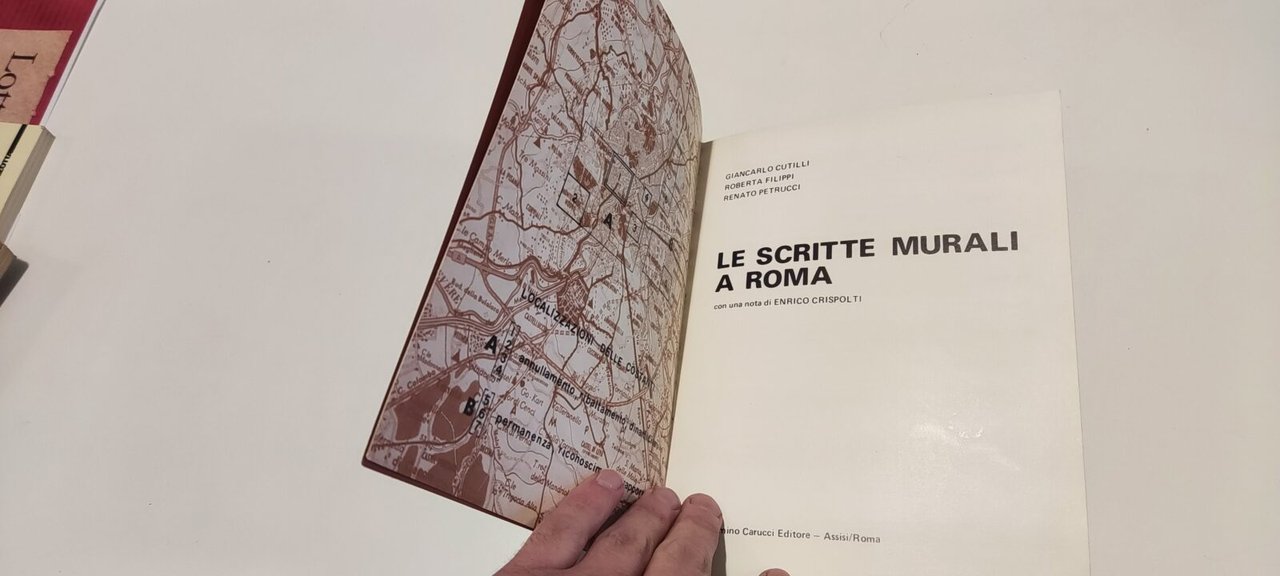 Cutilli, Filippi, Petrucci - Le scritte murali a Roma Carucci editore - Prima edizione 1974 Libro in ottime condizioni, minimi segni del tempo: piccole tracce di polvere alla prima pagina bianca, piccole abrasioni ai margini, tagli leggermente ingialliti. Non esitate a contattarci per altre foto o richieste. Saremo lieti di soddisfare ogni vostra esigenza.