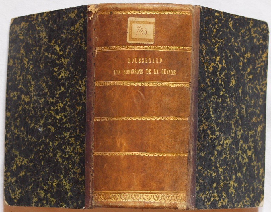 In 8. Dim. 19x13,5x8,5 cm. Pp. 364, (4)+(4)+407, (4)+350. Bel volume senza data ma della fine del XIX secolo si questa raccolta di tre romanzi scritti da Louis Boussenard (1847-1910) autore francese di romanzi di avventure. Medico di professione, viaggiò nelle colonie francesi specialmente in Africa. Il volume contiene i seguenti romanzi: "Le secret d'or", "Les mysteres de la foret vierge", "Le tigre blanc".<BR>Ogni volume contiene otto incisioni delle quali una in antiporta. Opere complete di tutte le pagine. Bella copertina in mezza pelle con titolo e decorazioni in oro al dorso. In buone condizioni. Copertina in mezza pelle con titolo e decorazioni in oro al dorso in buone condizioni generali con lievi usure ai margini e dorso. Legatura in buone condizioni. All'interno le pagine si presentano in buone condizioni con rare fioriture. Lieve gora d'umidità al margine di piegatura dal frontespizio del primo volume a pag. 347 della seconda opera. Beautiful volume not dated but of the end of the XIX century of this collection of three novels written by Louis Boussenard (1847-1910) french author of novels of adventure. Physician of profession, travelled in french colonies above all in Africa. The volume contains the following novels: "Le secret d'or", "Les mysteres de la foret vierge", "Le tigre blanc". Each volume contains eight engravings of which one is in the frontspice. Work complete of all pages. Beautiful half leather cover with golden title and decorations in the spine. In good conditions. Half leather cover with golden title and decorations in the spine in good general conditions slightly worn in the edges and spine. Binding in good conditions. Inside pages are in good conditions with occasional foxings. Slight humidity stain in the folding edge from title page of the first work until page 347 of the second work.