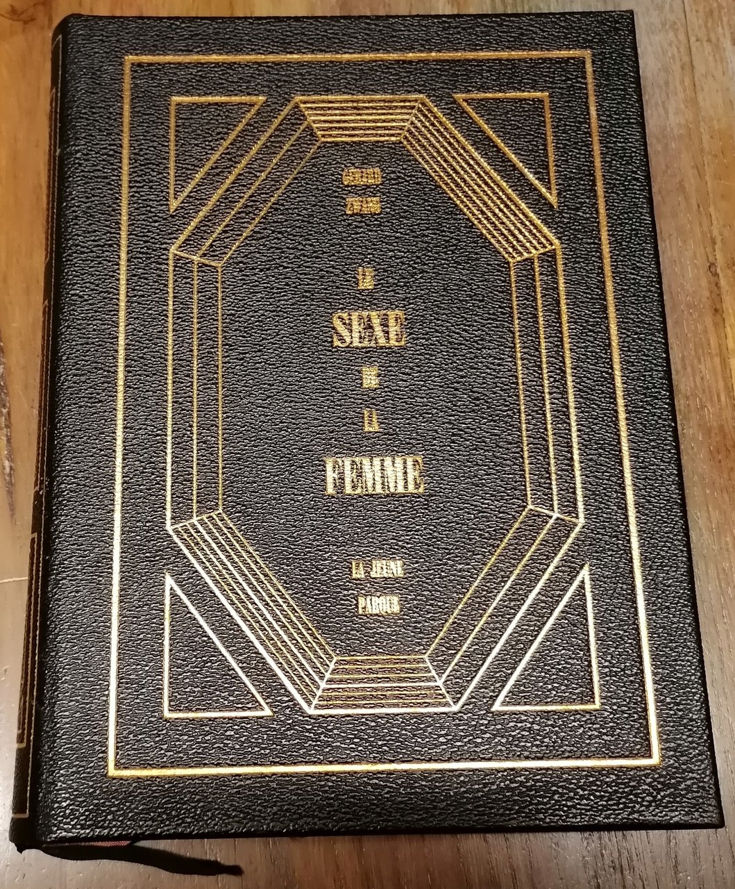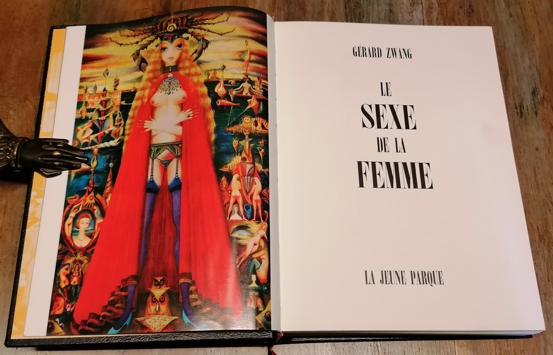 (Sessuologia - Estetica - Anatomia - Mitologia - Fisiologia - Arte - Erotismo) In 8° grande, legatura editoriale in piena pelle nera a grana grossa, titoli e ricche impressioni in oro al dorso ed al piatto anteriore, taglio di testa dorato, doppio segnalibro in tessuto, custodia rigida con bordi anteriori in pelle, guardie figurate, pp. (2),488,(5), un ricco apparato iconografico con figure in b/n nel testo e tavole a colori fuori testo illustra la rappresentazione degli organi genitali femminili nell'arte, dall'antichità fino alle avanguardie del Novecento. Bella, elegante pubblicazione. Alcune sbucciature superficiali ai margini della custodia, per altro esemplare fresco e ben conservato.