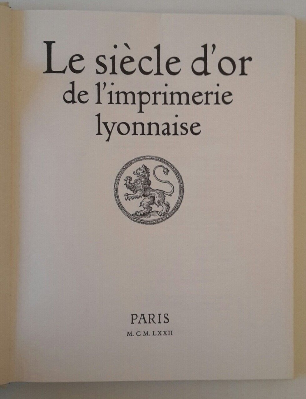 LE SIECLE D'OR DE L'IMPRIMERIE LYONNAISE PARIS EDITIONS DU CHENE 1972