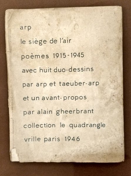 Volume in 8° in lingua francese, brossura editoriale con alette, pagg. 140 con poesie e illustrazioni di Jean Arp. Edizione di 1000 esemplari. Questo è il numero 718.