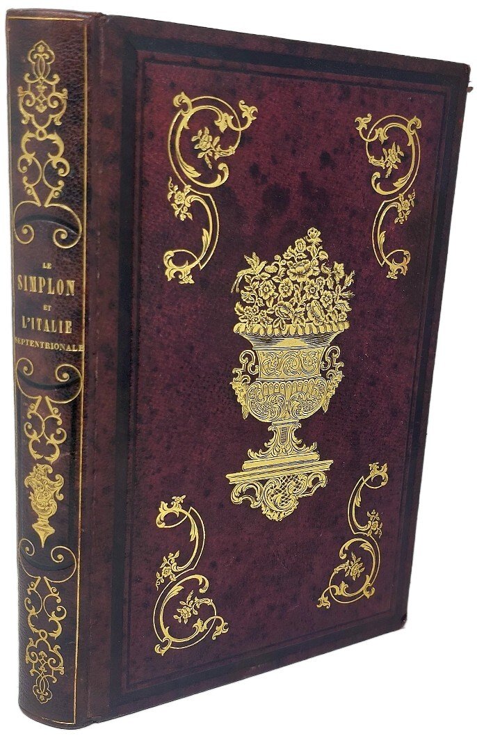 >in-8, pp. (4), 355. Splendida legatura del tempo in pieno marocchino zigrinato violetto, decorato con grandi fregi oro sui piatti, al dorso a nervi titolo e fregi oro, tagli dor. Illustrato da un antiporta e 12 tavole f.t. con belle vedute dei laghi alpini e città dell'Italia settentrionale (Courmayeur col massiccio del Monte Bianco sullo sfondo, Milano, Verona, Venezia, Firenze), finem. inc. in acciaio dai disegni di Cockburn, Bartlett, Leitch, ecc. Prima edizione, pubblicata anonima, di quest'opera, che dopo aver trattato del Vallese, Valle d'Aosta, Piemonte e Lombardia, s'interessa anche, nonostante il titolo, alle bellezze dell'Italia centrale. Esemplare con uniforme brunitura, in legatura d'amatore. Perret 357. Fossati-Bellani I, n. 551(col nome dell'autore, ''Deuxième édition'' , 1843). Cfr. Il Monte Bianco nelle immagini...'800, p. 113.
