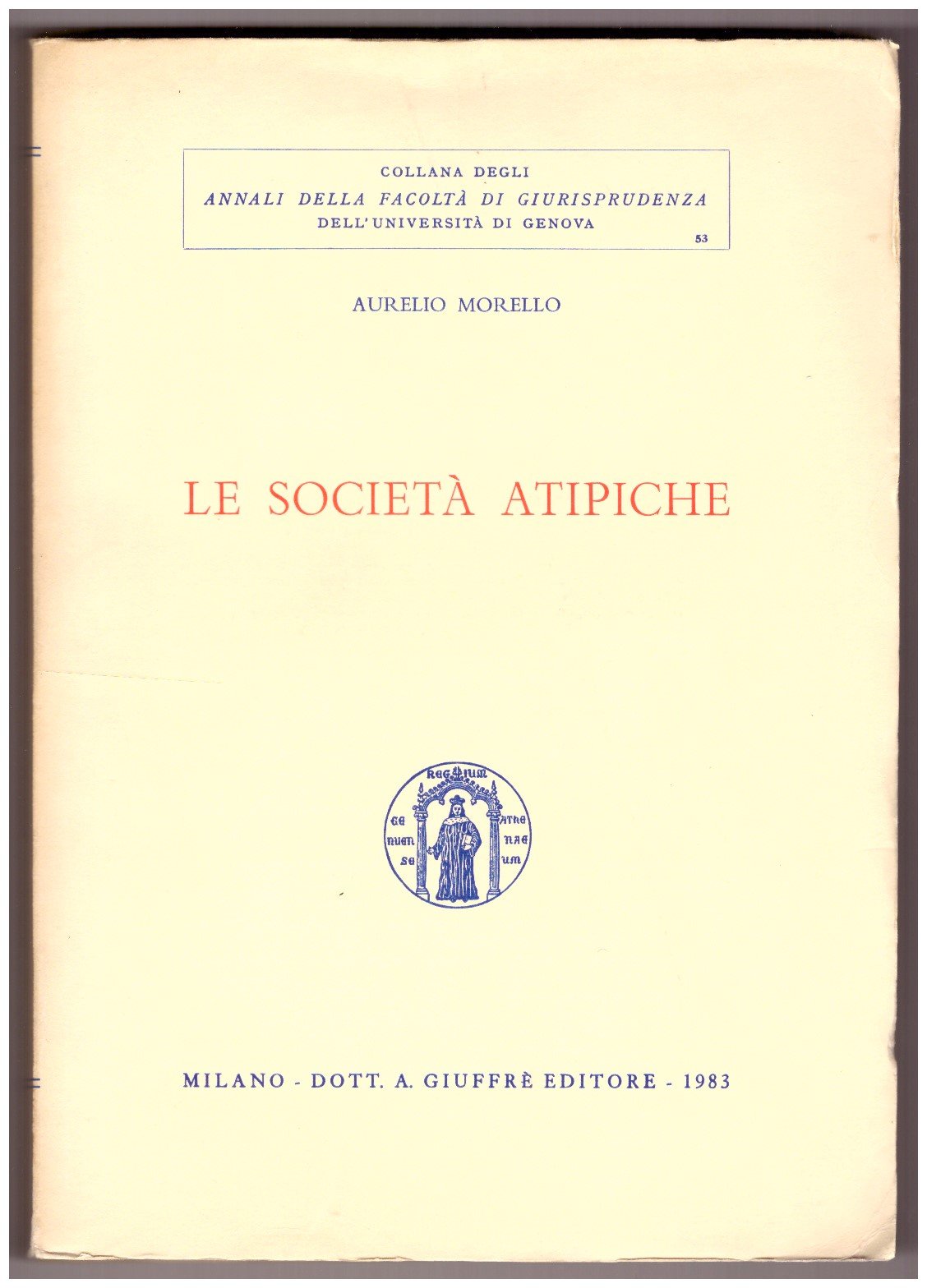Un volume (24 cm) di 491 pagine. A fogli ancora chiusi. Brossura editoriale con titolo alla copertina, nella collana degli Annali della facoltà di Giurisprudenza dell'Università di Genova. Ottime condizioni.