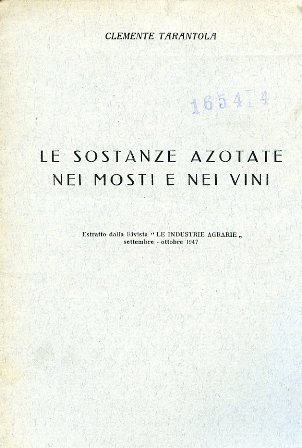 Le sostanze azotate nei mosti e nei vini. Estratto dalla Rivista 'Le Industrie Agrarie' settembre - ottobre 1947