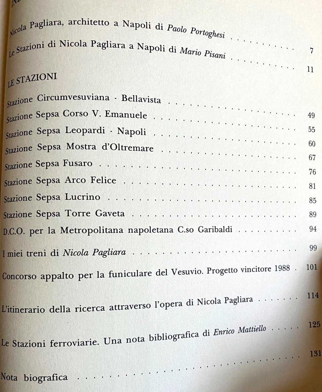 Soggetti: Architettura Architetti napoletani Biografie memorie Opere architettoniche Stazioni ferroviarie Stazione Circumvesuviana Bellavista Sepsa Corso Vittorio Emanuele Stazione Leopardi Napoli Mostra d'Oltremare Fusaro Arco Felice Stazione Lucrino Torre Gaveta D.C.O. Metropolitana napoletana Corso Garibaldi Treni Concorso Appalto Funicolare Vesuvio Progetto vincitore Bibliografia Saggi Collezionismo Libri rari fuori catalogo Autografati Illustrati Dedica autografa Da collezione Liberty napoletano Flavia Fascia Arredo Urbano Edilizia cittadina Costruzioni Edificazione Stazionamento Autobus Domus Tecnica Materiali Acciaio Novecento Inox Alvar Aalto Arredamento Casa Banco di Napoli Baronissi Basamento Berkein Bocciardata Calcestruzzo Castellabate Centrale Centro Direzionale Collegamenti verticali Complesso Copertura Corrimano Costruzione Edificio Egidio Eronico Ferrovia Circumflegrea Filiale Zona Funzione Granito nero Hall Impianti Infissi Ingresso Interno Asse Verde Lamiera Locali Mensa Montanti Vista Nocera Inferiore Otaniemi Ottone Palazzo Edilres Piano ammezzato Pianta Portico Progetti Rampe Lastre Sala Mostre Scuola Rosa Luxembourg Servizi igienici Sollevamento AMAN Spazio architettonico Fuorigrotta Struttura Torre 2G Einstein Torri Uffici Vista Vincenzo Nasta Concorsi Progettazione Barriere architettoniche Maestri Generazione Anni Cinquanta Pionieri Moderna Tradizione Lezioni Scudillo Capodimonte Grand Hotel Salerno Rettorato Design Roberto Pane Marcello Canino Giulio De Luca Carlo Cocchia Marmo Renato De Fusco Otto Wagner Anni Sessanta Anni Settanta Ottanta Novanta Bruno Zevi Manfredo Tafuri Giorgio Ciucci Benedetto Gravagnuolo Cesare de Seta Sergio Polano Autogas Tufo Cemento Boaga Pevsner Firenze Transito Passeggeri Sosta Angeleri Jodice Michel Ragon Roisecco Cagliari Funiculare vesuviana Carrozze Studi preliminari Fotografie Elaborati Grafica Hector Guimard Parigi Vienna Modelli Angiolo Mazzoni Pompei Portici Deco Lamont Young Vesuvio Movimento Moderno Luigi Cosenza Frediano Frediani Frank Lloyd Wright Viollet-Le-Duc Erich Mendelsohn Hans Poelzig Architecture Neapolitan architects Biographies Memories Architectural works Railway stations Naples Neapolitan subway Trains Competition Tenders Vesuvius funicular Winning project Bibliography Essays Collectibles Rare books out of print Autographed Illustrated Autograph dedication Collectible Neapolitan liberty Street furniture City Constructions Building Bus station Technique Materials Steel Twentieth century Home furnishings Basement Concrete Central Business District Vertical connections Complex Roof Handrail Construction Building Circumflegrea railway Branch Area Function Black granite Systems Fixtures Entrance Interior Axis Sheet metal Rooms Canteen Uprights View Brass Building Mezzanine Floor Plan Projects Ramps Slabs Exhibition hall School Toilets Architectural space Structure Towers Offices Competitions Design Architectural barriers Masters Generation Fifties Pioneers Modern Tradition Lessons Rectorate Marble Sixties Seventies Eighties Nineties Tuff Cement Florence Transit Passengers Stop Carriages Preliminary studies Photographs Elaborations Graphics Paris Models Pompeii Vesuvius Modern Movement