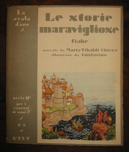 8vo (cm. 24,5), 86 pp. con num.se illustrazioni a colori n.t. di Gustavino. Cartoncino editoriale figurato a colori. Volume facente parte della Biblioteca della Scala d’Oro concepita e diretta da Vincenzo Errante e Fernando Palazzi. Serie II per i ragazzi di anni 7. Esemplare in buono stato di conservazione.